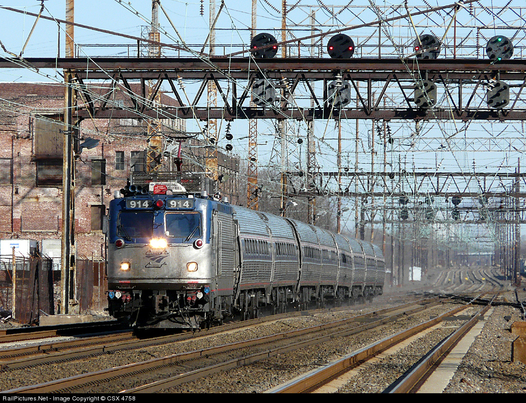 RailPictures.Net Photo: AMTK 914 Amtrak ASEA AEM-7 at Marcus Hook, Pennsylvania by CSX 4758