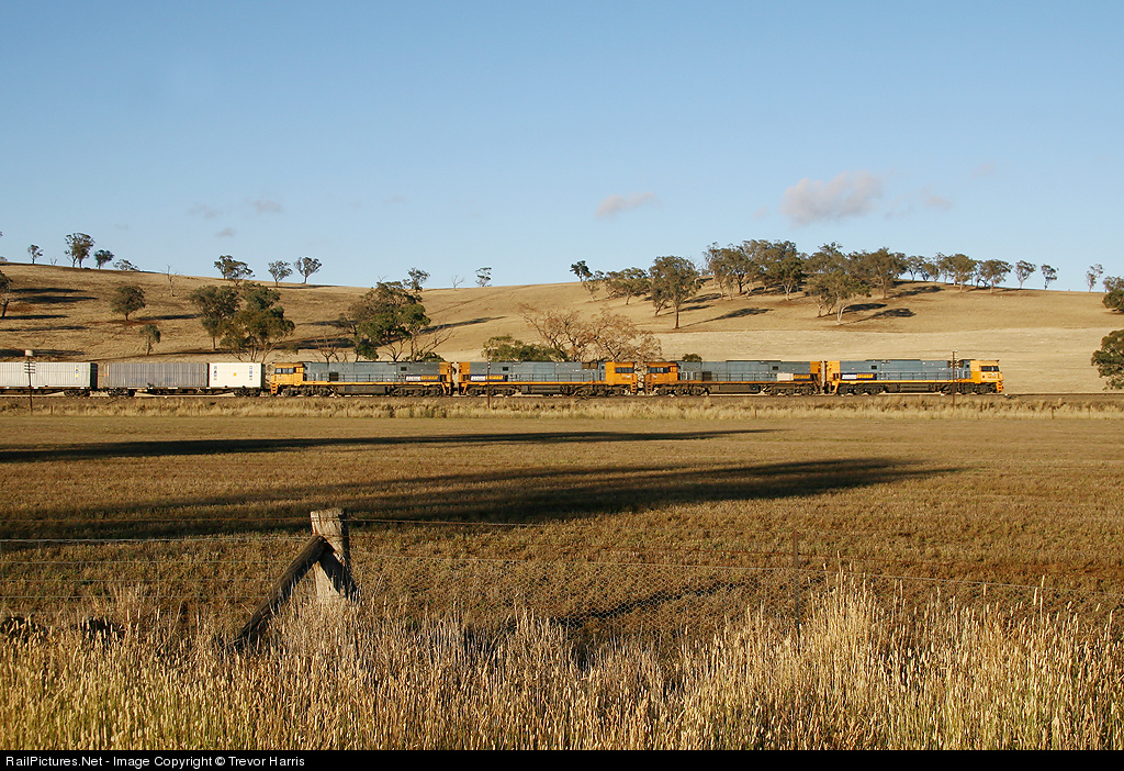 Early morning Pacnat intermodal with Quad NR's lead by NR64,NR113,NR66 and NR51 pull this train out of Cootamundra on its way across Australia from Perth to Sydney.