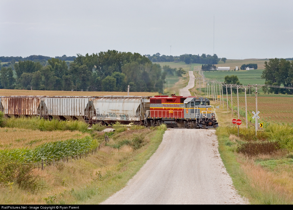 RailPictures.Net Photo: IANR 3803 Iowa Northern EMD GP38-2 at Mt. Auburn, Iowa by Ryan Parent