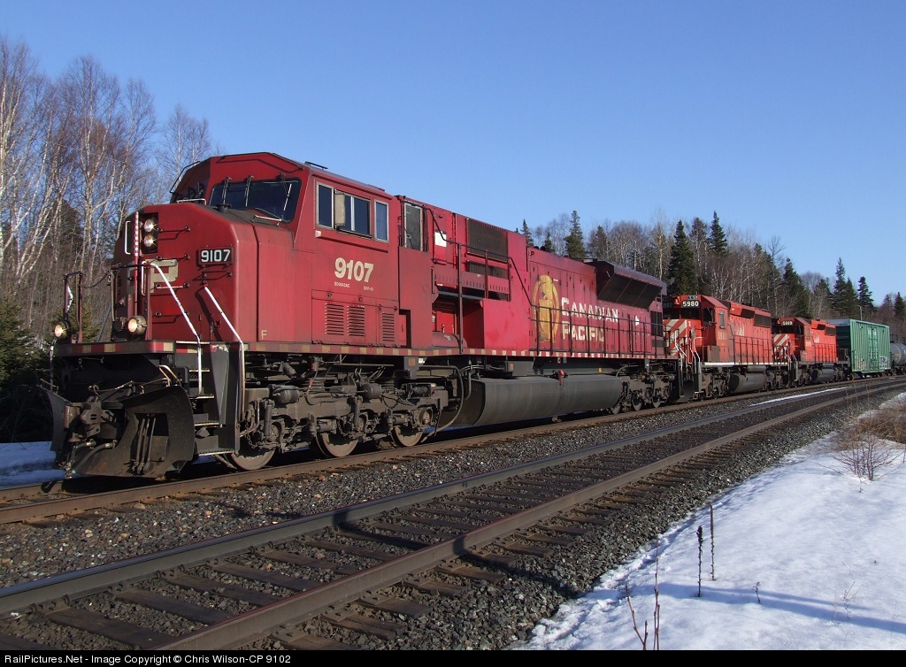 RailPictures.Net Photo: CP 9107 Canadian Pacific Railway EMD SD9043AC at Marathon, Ontario, Canada by Chris Wilson-CP 9102