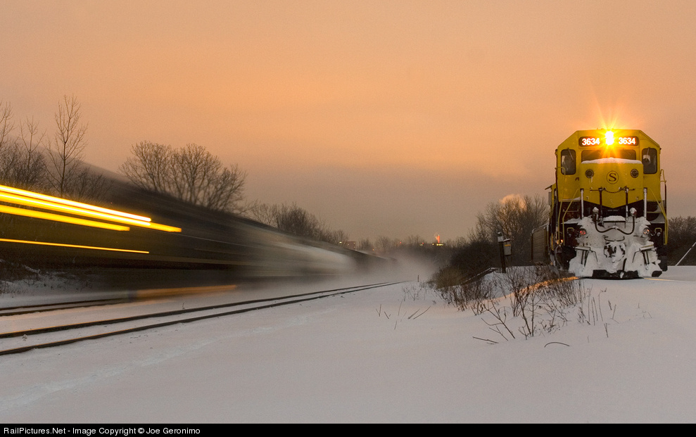 It's sunset and a New York Susquehanna & Western freight sits on the hill at CP293 waiting to deliver cars to the CSX. CSX Q625 rumbles by westbound on track #1 for the signaled siding where he will stop and pick up a high & wide from the pocket track at Belle Isle.