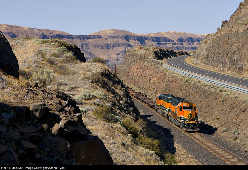 An eastbound baretable train rumbles through a cut in the rocks along the Columbia River. Not much lives in this region of the country, but this is fire ant territory, as we found out the hard way. Get your shots of these BNSF SD40s now, because between the economic downturn and the several hundred new GEVOs coming from Erie, these will soon be a thing of the past.