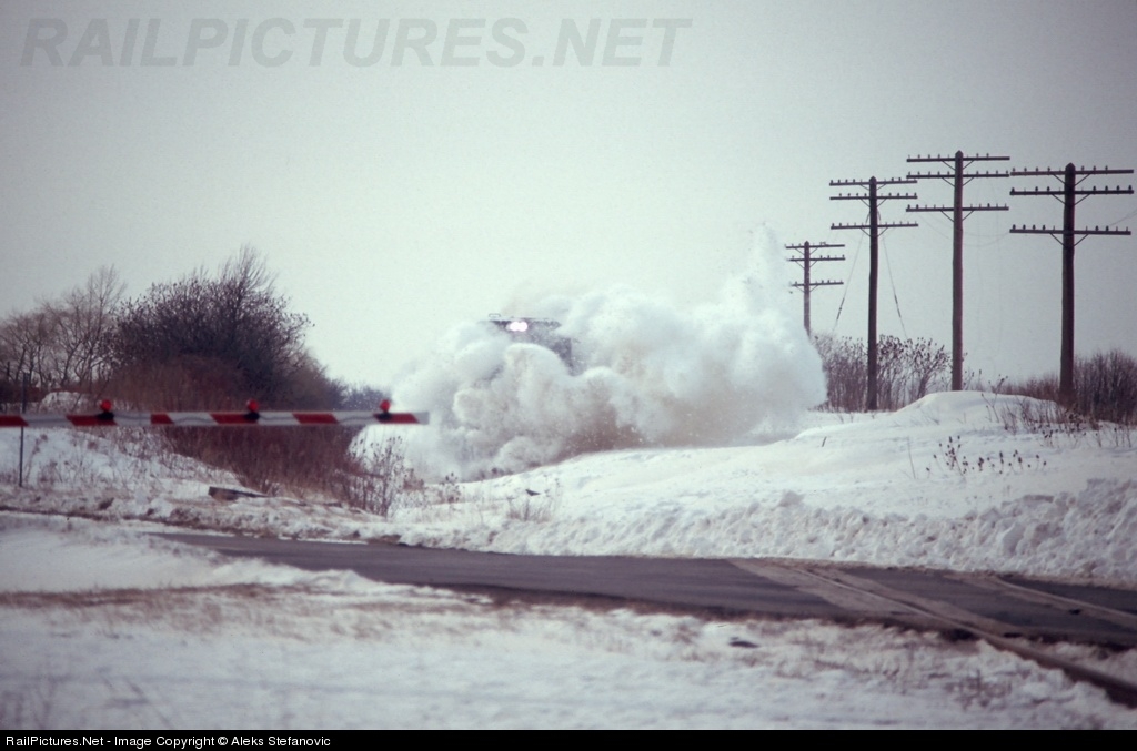 R320 plowing through a cut partially filled in from a recent snow storm. Cut was approx. 15 to 20 cars long and the snow you see out front of the lead unit was about the same depth through the entire cut. Train consist was CSX 7500 - CSX 7820 with 61 cars and caboose 904121. Time was 15:50