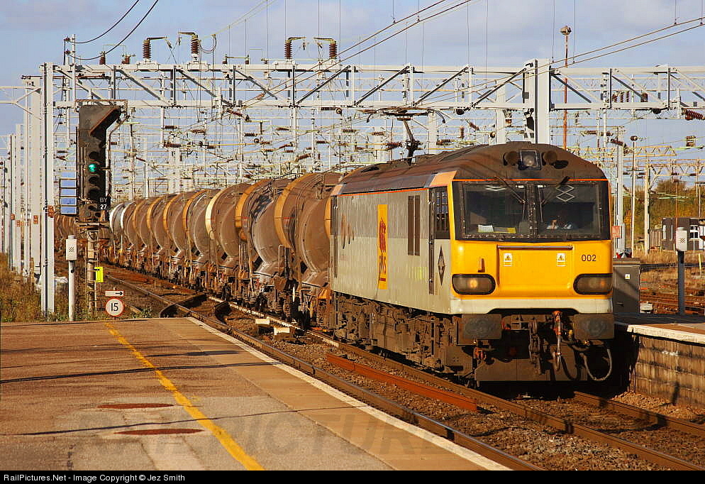 92002 'H.G Wells' heads the Mossend-Dollands Moor china clay slurry empties through Bletchley. The tanks are owned by NACCO, and the train will end up in Belgium via the Channel Tunnel.