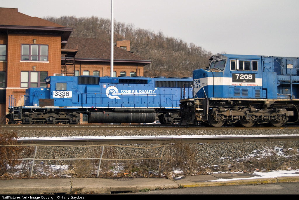 Conrail lives at CP WING. SD40-2 3336 is joined by sister SD80MAC 7208 also in CR paint in front of the old Westinghouse Air Brake Company building.