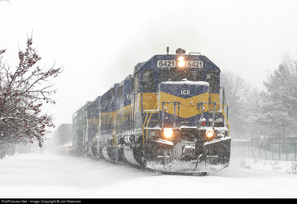 In advance of the coldest weather in decades Chicago is in the midst of a 10 inch snowfall. The ICE MBEMC has just passed B17 in Bensenville. The trio of SD40-2s will head across northern Illinois on it's trek to Savanna, IL and ultimately Mason City, IA