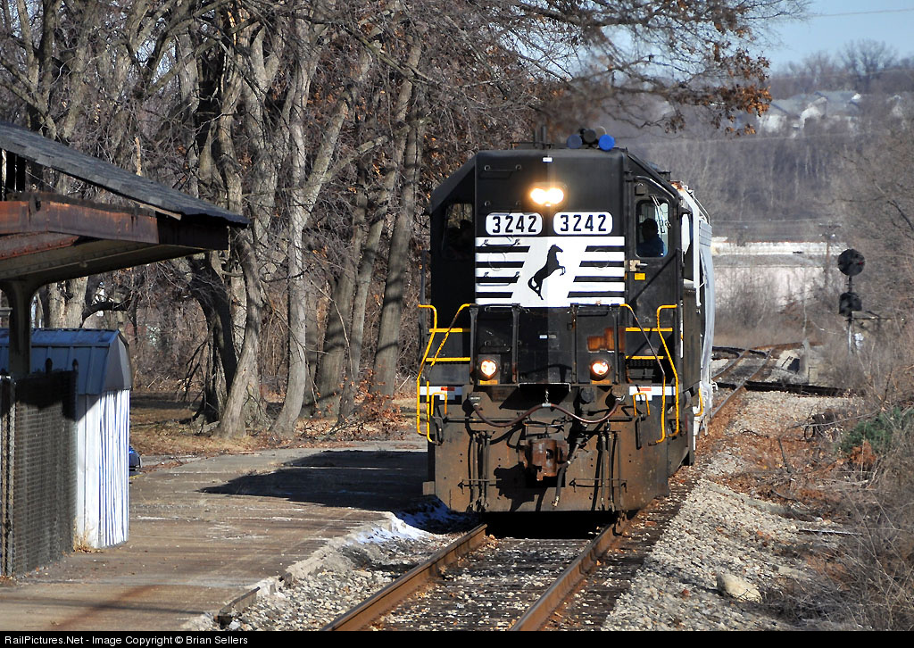 | A former Southern Railway SD40-2 is about to pass the former PRR station in Norwood, Ohio. This short train will soon return "home" to Berry yard in Bond Hill. |