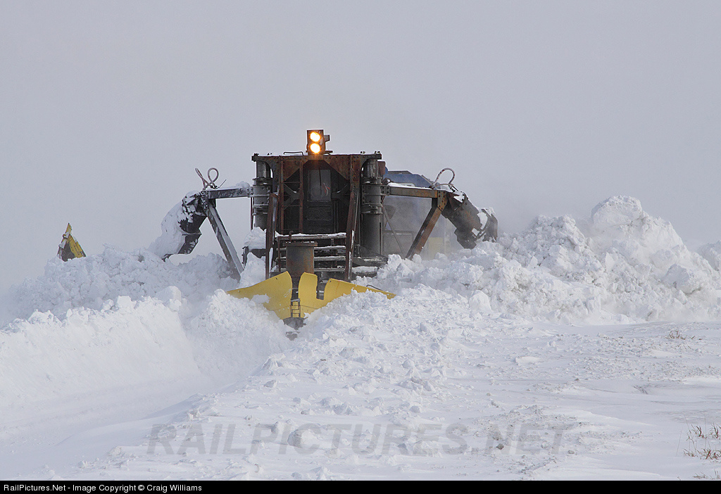 | The Jordan Dicther is shoving back snow drifts west of Mason City on their way west towards Spencer. Here the ditcher is in one of the bigger drifts between Sexton and Algona. With most of the railroad west of Mason City 10 mph due to rail conditions, the drifts get pretty deep when train dont knock the snow out of the cuts due to slow speeds. |