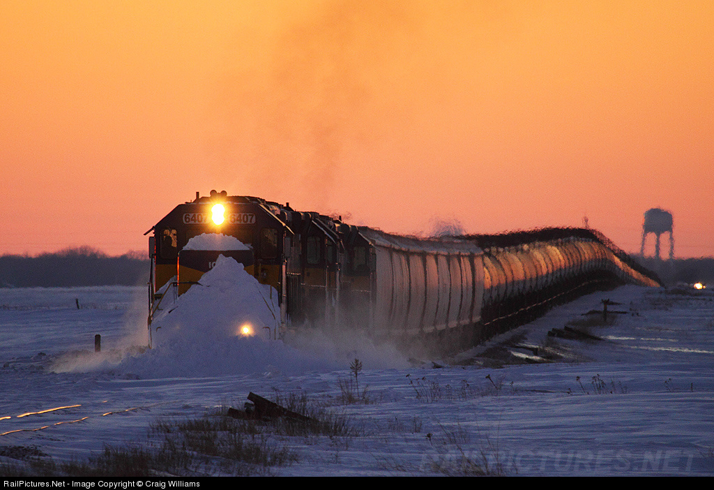 The Spencer day job has a Hartley ethanol train as they plow east out of Algona. This railroad is mostly 10 mph, so it is slow going pushing thru the drifts out here. This train will turn into a EHTCCX at Mason City for the rest of the trip to Chicago, IL. 4 SD 40-2's work hard to pull the 88 loads east at sunset.