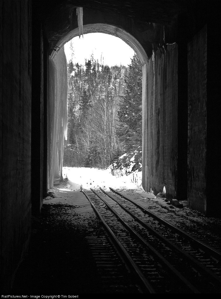 | Shot looking south from the only tunnel on the abandoned CN Kinghorn Sub. The ice forming over the portal of the tunnel is a sign that this line hasn't seen a train in quite some time. The last train through this tunnel was on May 15th, 2005. |