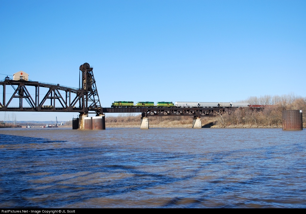 A GP39-2 and two GP11s are about to enter the lift span as they head south across the Ohio River to do a little transfer work in Louisville.