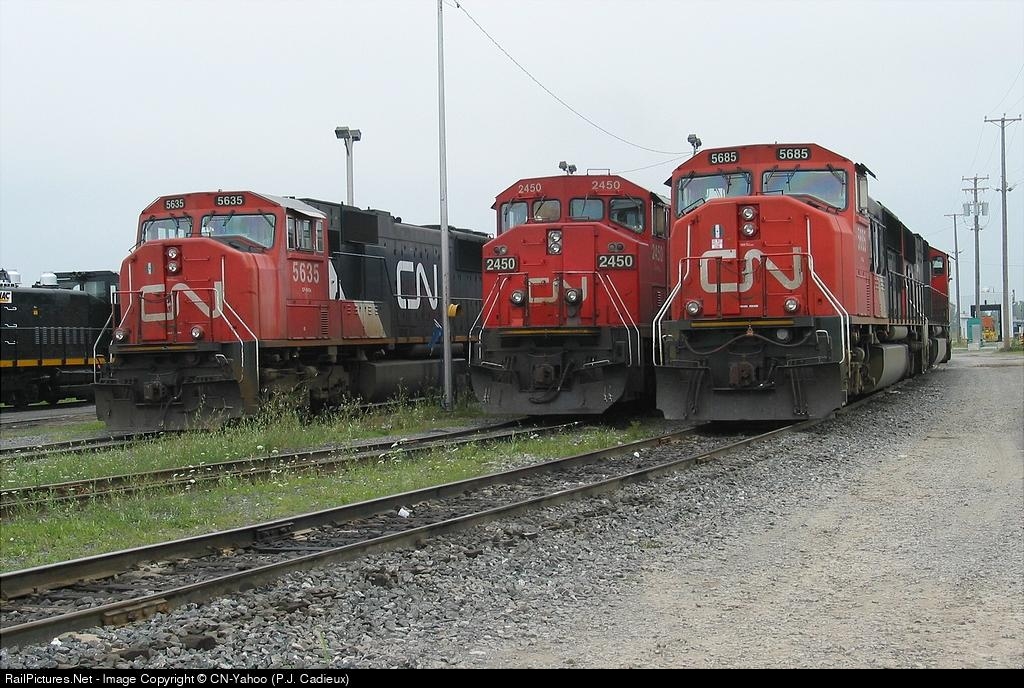 CN 5685, 2450 & 5635, resting outside Turnaround Diesel shop Taschereau Yd