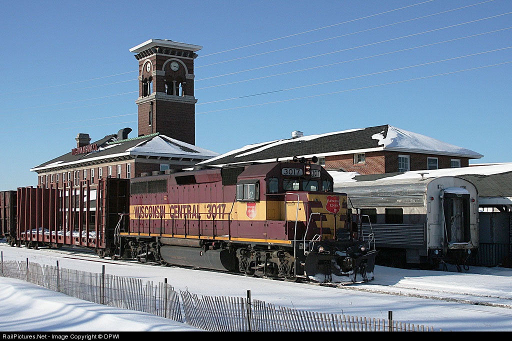 | As the "Palm Beach" slumbers the winter away, train A416 eases past the former CNW depot. The WC 3017 is on the head end of the push-pull set up from Stevens Point. These classic maroon and gold Geep's are becoming a rare find to photograph. Catch them when you can! |