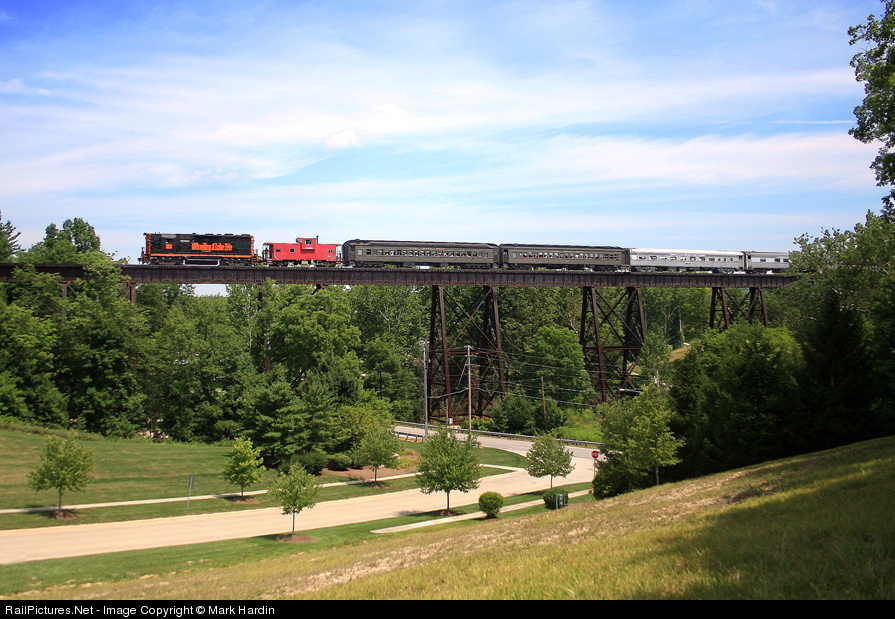 | The Midwest Chapter of the NRHS's annual charter crosses the River Styx Trestle on the old Akron, Canton & Youngstown Railroad (current Wheeling & Lake Erie Akron Subdivision) with an interesting consist including two Nickel Plate restored passenger cars. |