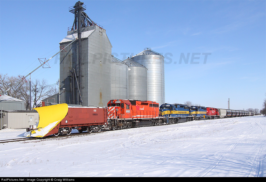 | 948 has just added the plow and the head 2 units at Fairmont. Now they pull onto the UP for the 8 mile trip over the Fairmont Sub to Welcome, MN and back to home rails. 948 ran yesterday as far as Fairmont with the plow before losing the head 2 units to ground relay due to heavy snow drifts west of Winnebago. There hasnt been a train out here since 1/22. |