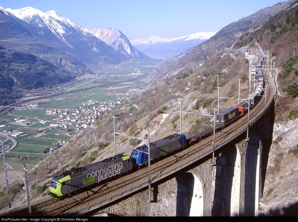 RailPictures.Net Photo: 485 009 + 185 536 BLS Lotschbergbahn 485 at Hohtenn, Switzerland by Christian Wenger