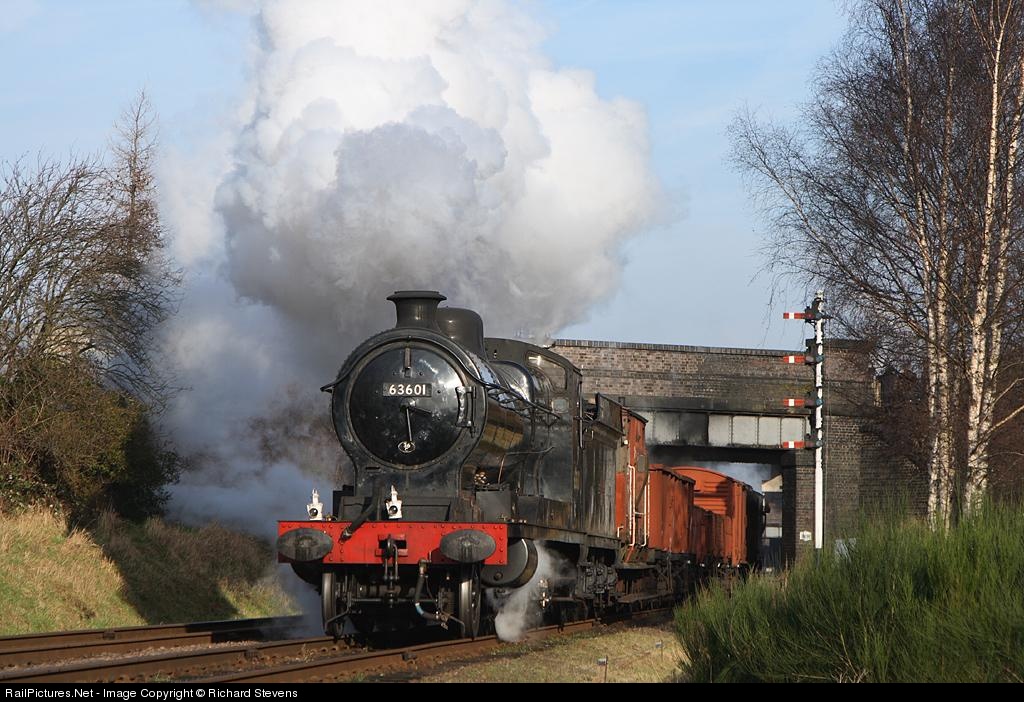 | Locos. of the O4 class saw service in Europe during both World Wars, but in Britain are remembered mostly for their many years of freight haulage on the Great Central Railway, for which they were originally designed. It is fitting that the sole British survivor (more survive in Australia!) is based on the preserved Great Central Railway, where it is now in its last year of service before overhaul. 63601 leaves Loughborough with a short freight train. |