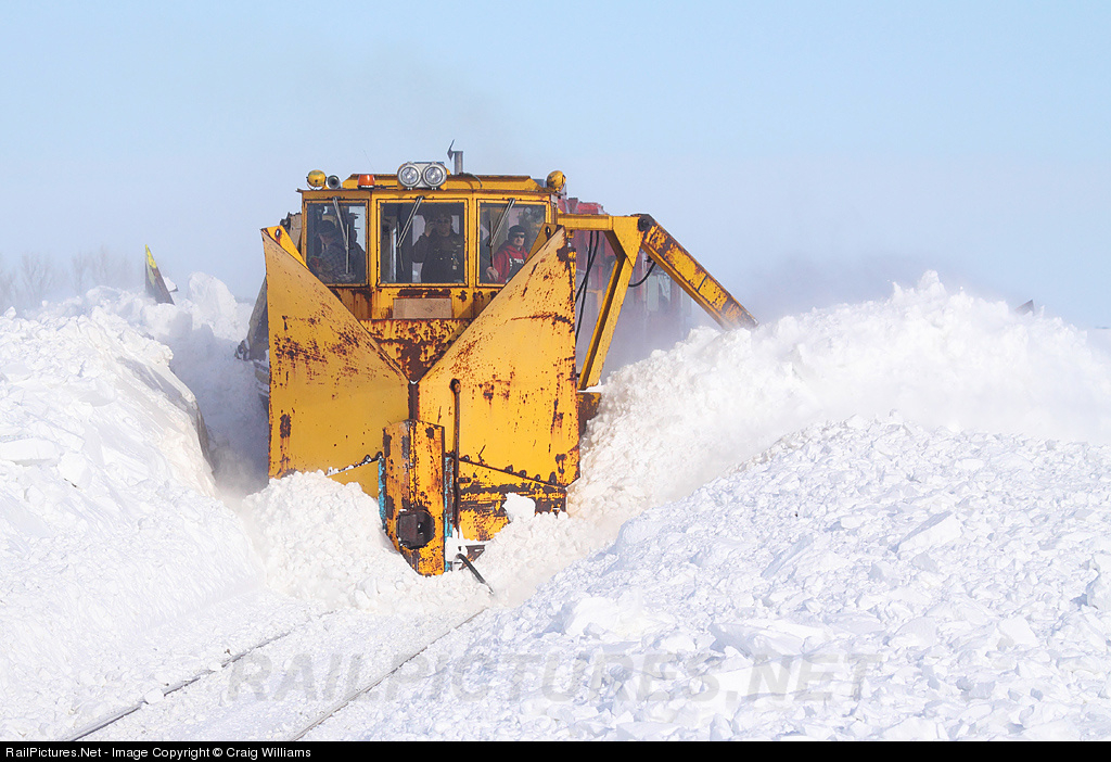 | A CP Jordan Ditcher works west on the New Town Sub just east of Kief. Crews are trying hard to open the New Town Sub back open after a rough month with big drifts, derailments, and stuck plows. This crew would only plow another 2 miles before stopping at a drift too big for this plow. Those drifts west of Kief will get pushed back with cats and bulldozers.