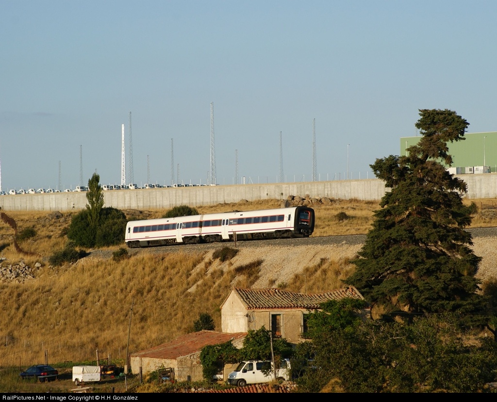 | TRD (Regional diesel train) from Salamanca to Madrid in outside´s Ávila city with the last light of the sun in September. |