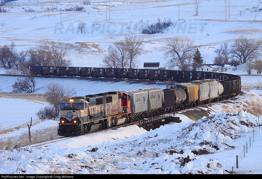 | The Mandan, ND to Beulah, ND local passes thru the drifts near MP 51 right after the rotary has just gotten done with the work here today. This local runs out of Mandan one day and back the next. They usually meet the Glen Herald coal shuttle at Glen Herald before continuing up the branch towards Zap on the westbound days. |