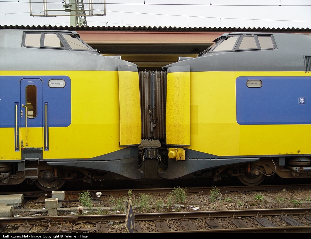 As has been mentioned the two doors in the front open up to link trains. This is illustrated in this pic. This train will be split up halfway, one half going to Den Haag (the Hague) and the other half going to Rotterdam.