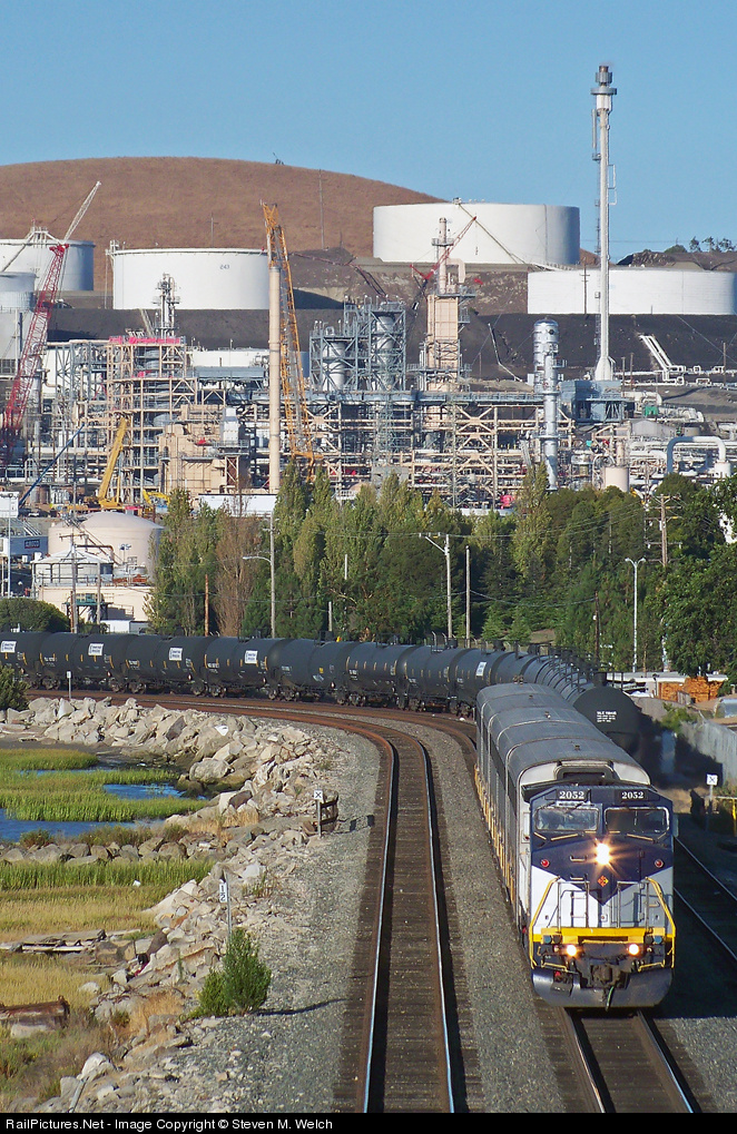 Before it got its' new paint scheme, the CDTX 2052 rolls along at 40MPH leaving the massive Conoco-Phillips refinery behind.