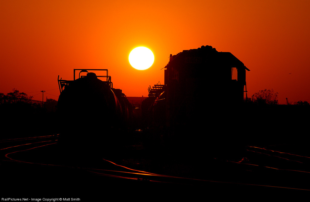As the sun sets, CSXT 4401, rests at Conrail's Livernois yard, in Detroit, Mi., after working all day on a yard job, as aircraft, (on the right) circle around before landing at Detroit Metro Airport,