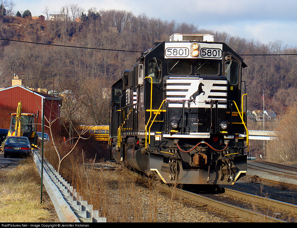 Ah NS 5801...So Ben and I were traveling to Pitcairn yard. We turned down a road and started looking for somewhere to park since we have never been there. Well, we turned a bend and here comes a helper set already!! Ben slams on the break and says, "Hurry! Hurry!". Yeah. Right. I had no shoes on my camera still packed up and under my seat....I threw my tennis shoes half way on, grabbed my camera bag, and took it out. Thank God the battery was in it!!! I jumped out of the car and snapped this picture. I thought my heart was going to jump out of my chest!!!!