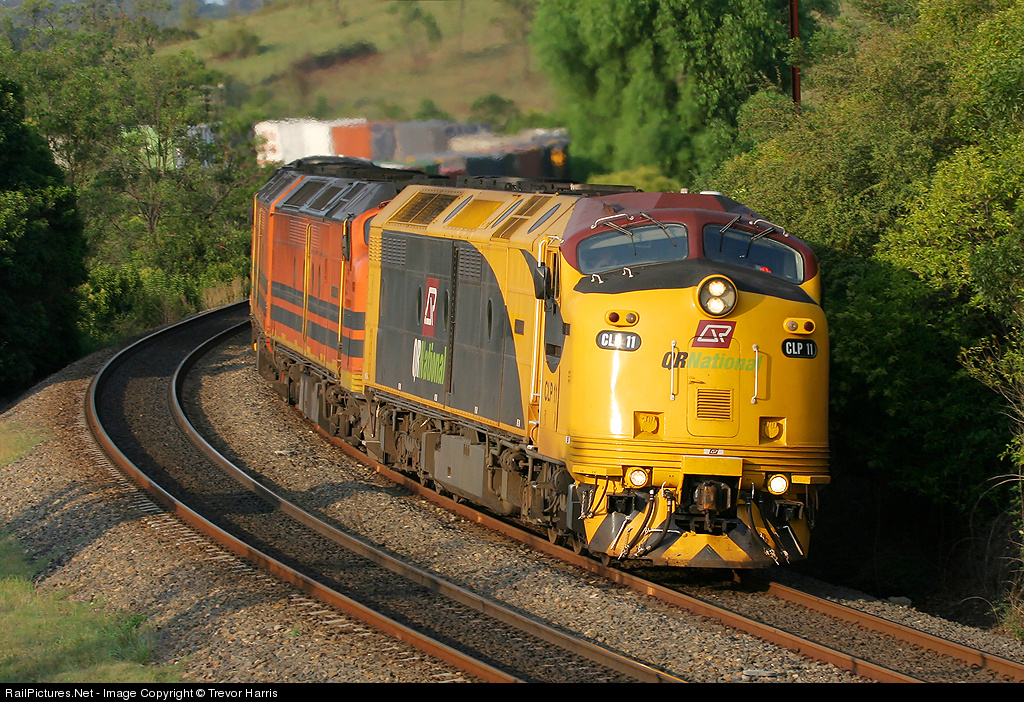| CLP11 still looking fresh in the new QRN paint job leads CLF1,CLF3 and LDP001 which was picked up in Cootamundra on its Journey from Melbourne to Brisbane.