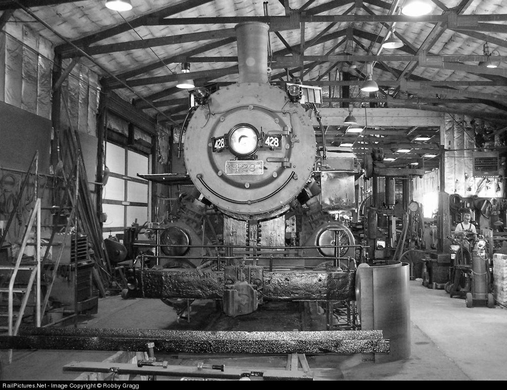 UP 428 sits in the steam shop at IRM. This engine is currently being restored to operating condition. It looks pretty good!