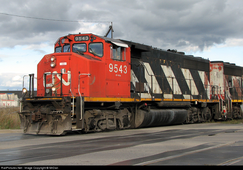 Once numbering nearly 278, CN's fleet of GP40-2L and GP40-2W locomotives has been reduced to a paltry 61 units. 9543, one of the survivors, is seen here under stormy clouds on train 577, one of the last bastions assigned GP40-2L/W's in the Greater Toronto Area.