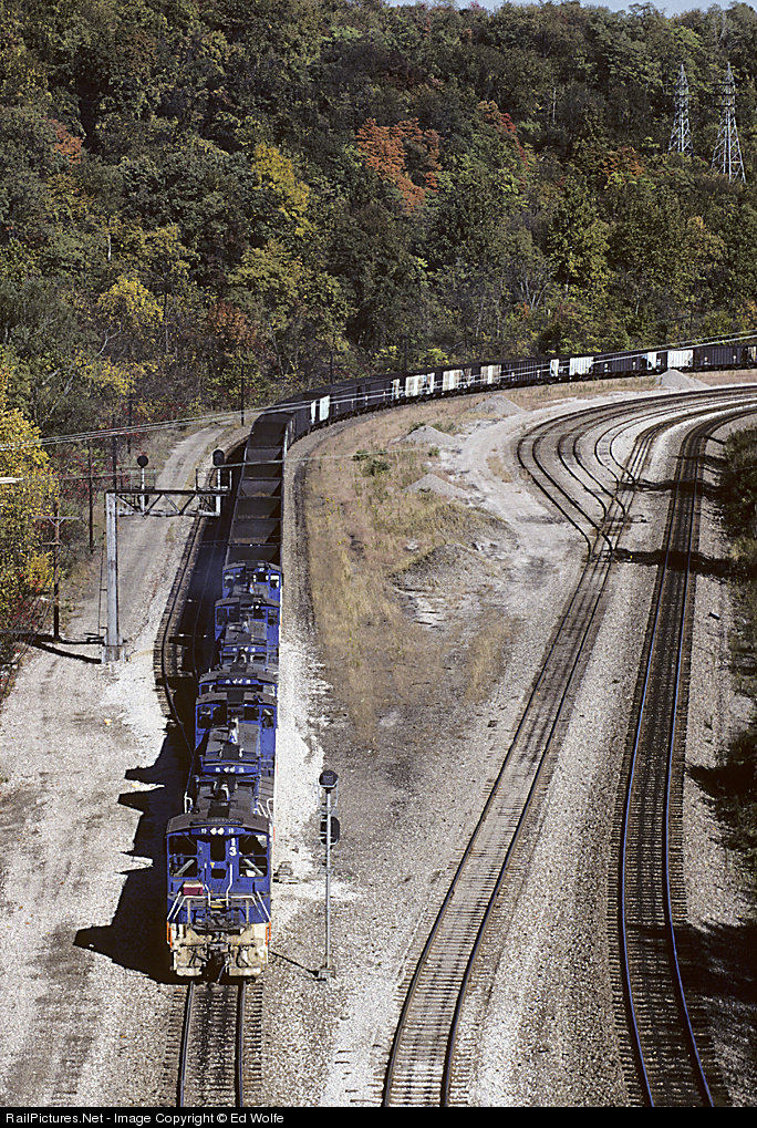 A union Railroad empty hopper train exits Duquesne Receiving Yard in route to USS's Clairton Coke Works.