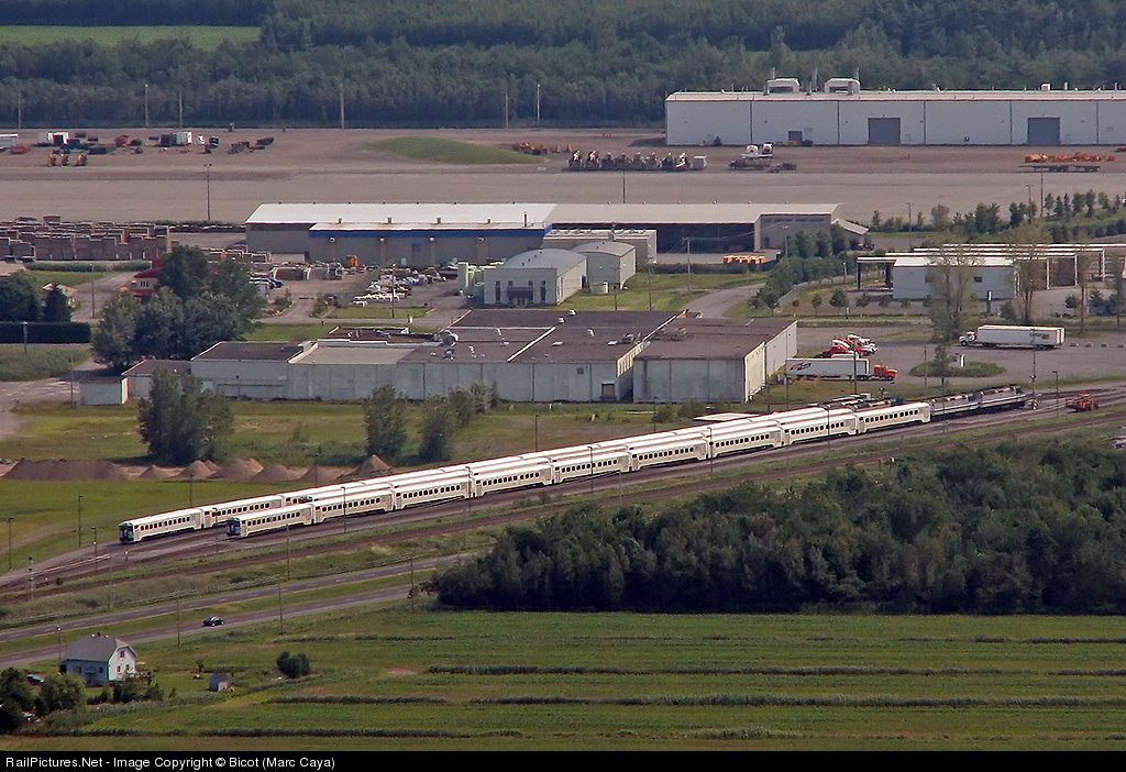 Three trains and four locos parked for the weekend at the Ste-Madeleine Theriault Yard.