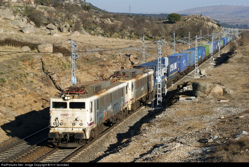 | Freight train from Valencia to Bilbao-Port, crosses Ávila in their travel of afternoon. |