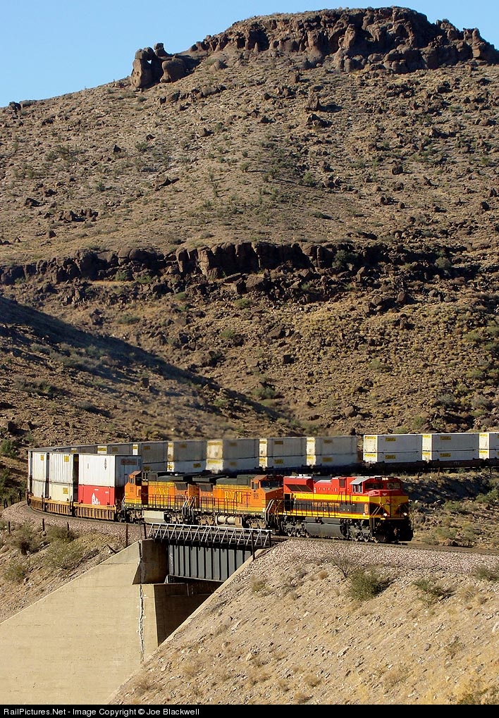 » eastbound KCS leading BNSF train on Seligman Sub Kingman Canyon