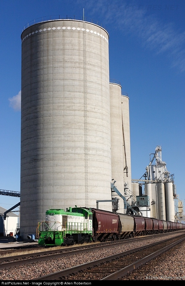 The silos at the Cargill elevator in Bradshaw dwarf their Alco S-2.