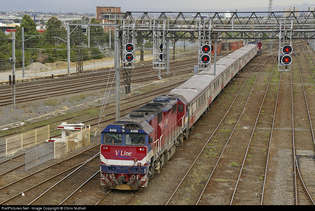 The extra services put on for the Avalon International Air Show also featured N class in push-pull mode, which does not occur in normal passenger service. N458, with N453 on the rear, approach Southern Cross station on empty cars from Lara, to form another shuttle to take patrons to the airshow, on a very indifferent day, weatherwise.