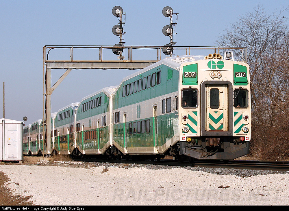 | Departing Oakville Station, four eyes up front keep a wary watch on the photographer as just a couple of days ago in Toronto a man walking his dogs along the ROW jumped in front of a GO train to save one of them that panicked, tragically getting killed along with it. |