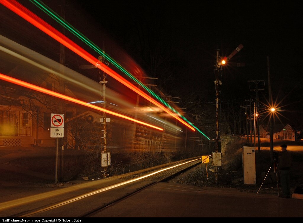 The evening Amtrak Cardinal and Hoosier State rolls through downtown Crawfordsville