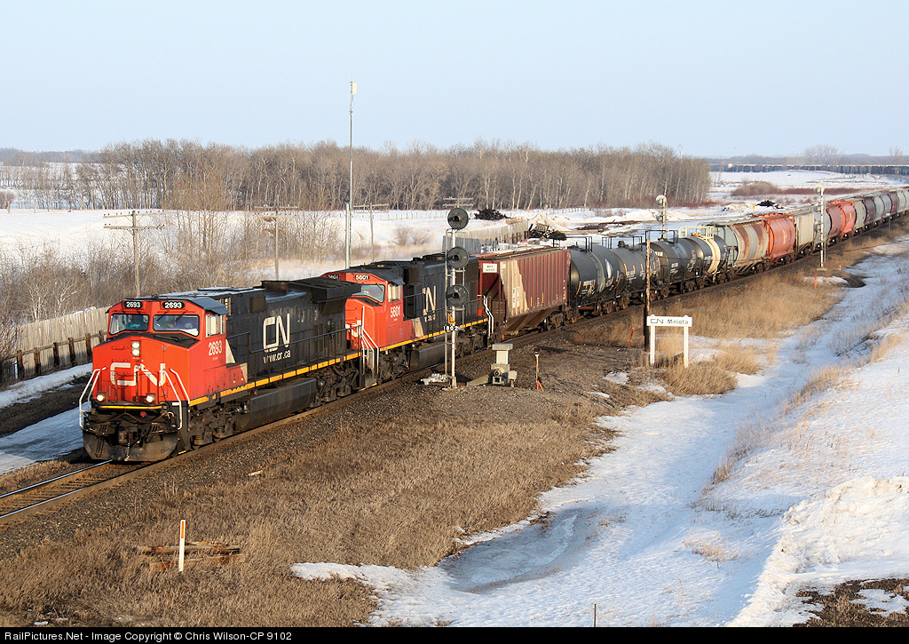 RailPictures.Net Photo: CN 2693 Canadian National Railway GE C44-9W (Dash 9-44CW) at Miniota, Manitoba, Canada by Chris Wilson-CP 9102