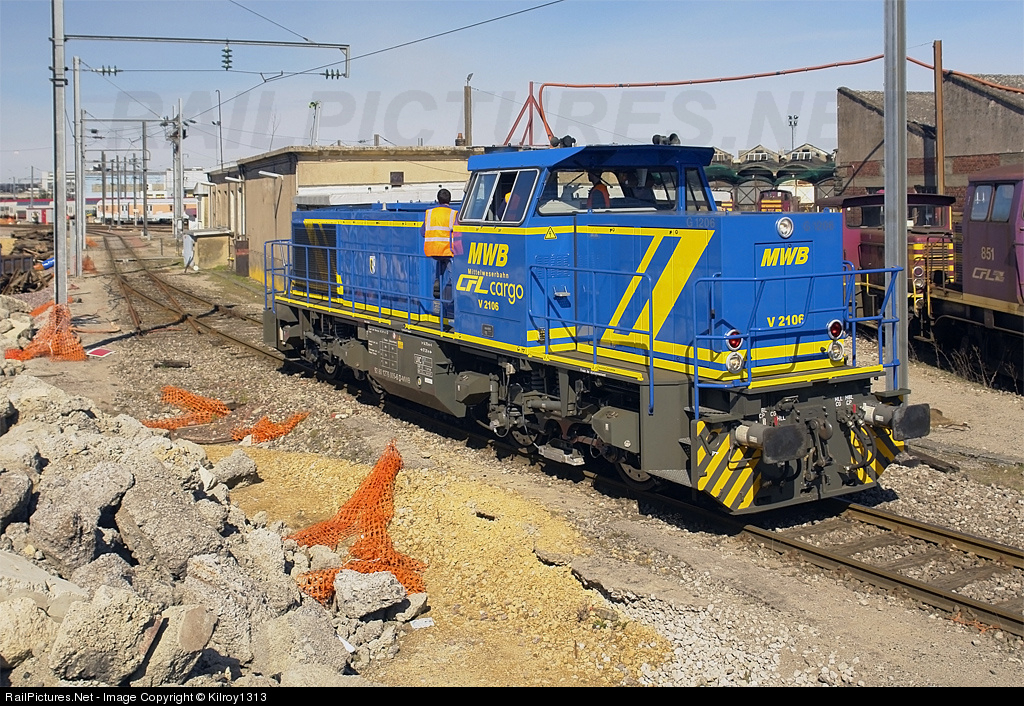 | Vossloh diesel loco # V 2106 manoeuvres inside the Luxembourg City depot. This loco is rented by CFL Cargo from the german "Mittelweserbahn" (MWB). It wears the logos of the two companies.