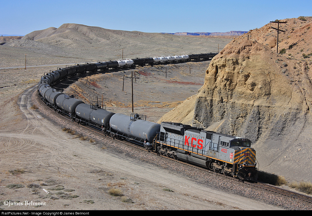 A stealth gray KCS SD70ACe trails a BNSF Railway manifest along the former D&RGW at East Thompson, Utah. This 78 car Denver-Provo manifest required the big KCS unit's assistance for the up and down profile of UP's Green River and Provo Subdivisions between Grand Junction, CO and Provo, Utah.