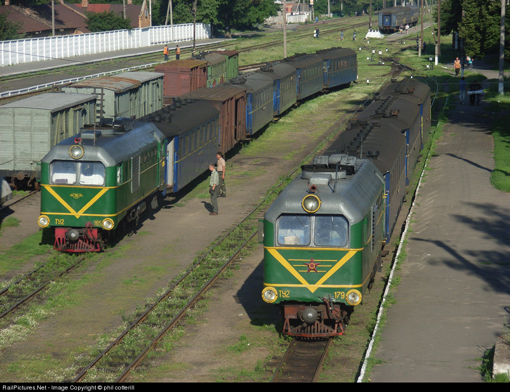 750mm gauge TU2-179 has arrived at Haivoron from Rudnista while TU2-165 prepares to take just 1 carriage on the 0800 to Golovanesk. The far tracks are 5 feet gauge.
