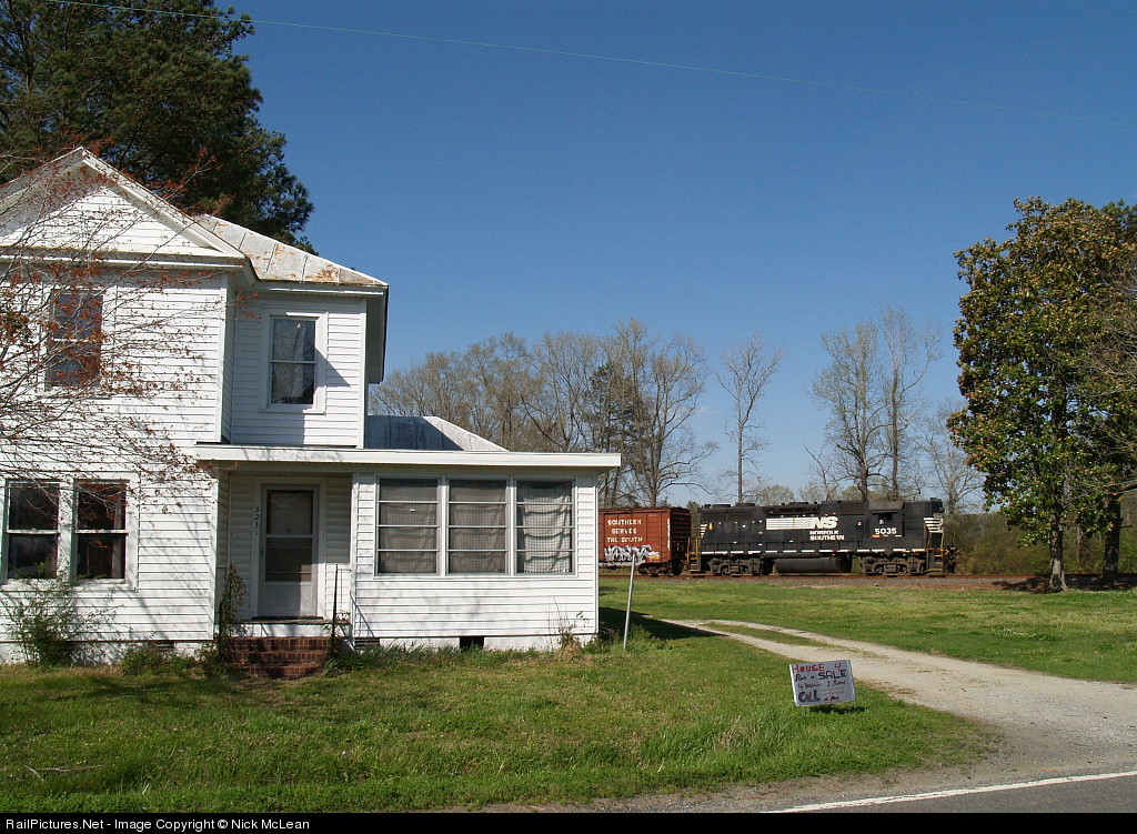 | “HOUSE 4 rent or SALE” proclaims this festive little sign. Perhaps the perfect railfan home? A couple locals a day but not enough to drive any significant others insane. This attractive two story is located by the tracks in the metropolis of Ernul as E14 makes its run from Chocowinity to the Warehouser branch just a mile south of this location. |