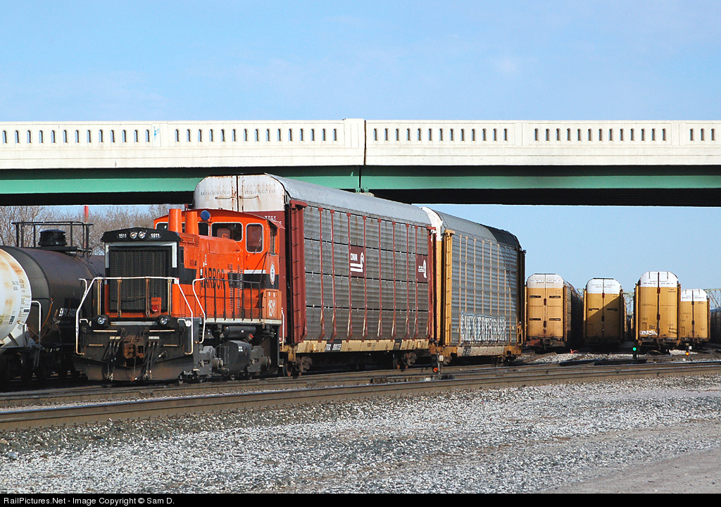 An IHB switcher shuffles the autoracks around Gibson yard.
