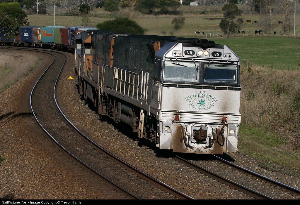 | NR85,in Southern Spirit livery and NR98, NR103 leds Pacific Nationals late afternoon 4BM4 through Werai. |