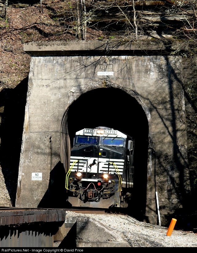| An ES40DC peers from one of the Hatfield Tunnels, named after the same family involved in the Hatfield McCoy feud who lived in this area. The tunnels are actually in Kentucky, the only section of the Pocahontas Route that is. |
