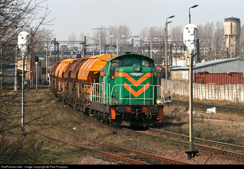 | SM42 switcher takes a consist of T-series, delicate bulk cargo wagons to the Gdynia harbour docks. |