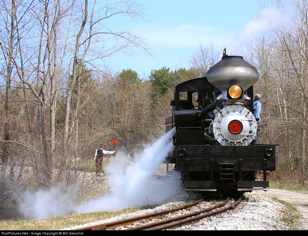| New Mexico Lumber Company Shay No. 7 blows off some steam as it comes around the pond at Hesston, The Hesston Steam Museum opened to host the "Friends of the Cumbres & Toltec Scenic Railroad" Midwest meeting. A nice place to see Narrow Gauge, 1/4-scale and 1/8 scale Steam all operating at the same time. http://www.hesston.org |