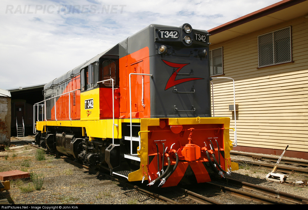 | T342 freshly painted in El Zorro livery with its spectacular red 'Z' on the nose, sits at Seymour Rail heritage centre awaiting delivery. The unlikely named El Zorro is a niche rail operator on the East Coast of Australia. |